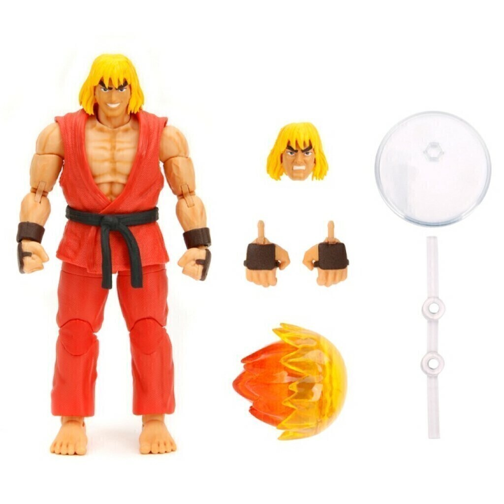 Figura articulada do Ken que proporciona mais maneiras de brincar e exibir, baseada no jogo Ultimate Street Fighter II, possui aproximadamente 16cm de altura e inclui acessórios.
